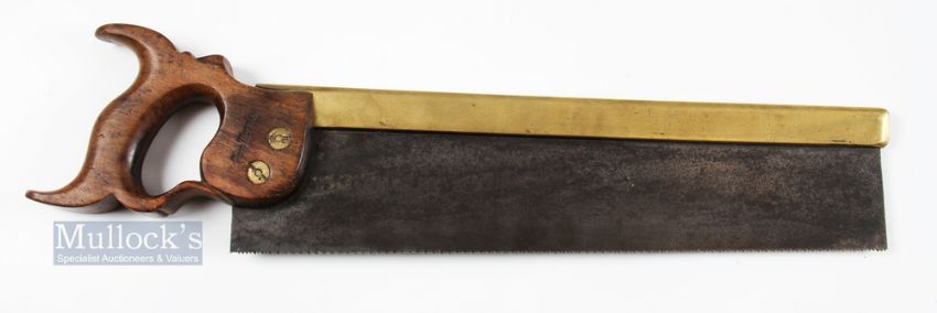 Fine Brass Backed Dove Tail Golf Club Makers Hand Saw made by J.V Hill Late Howell London c1896 - stamped with Tom Morris Autograph stamp mark to the one side of the grip - overall 18.75" long. Note: Part Three - Golf Collection from "David Easby Estate"