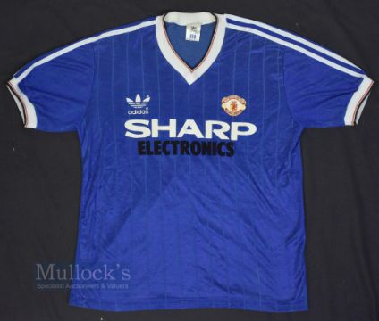 1982/83 Manchester United Third Football Shirt Adidas, Sharp Electronics, size L, in blue, short sleeve