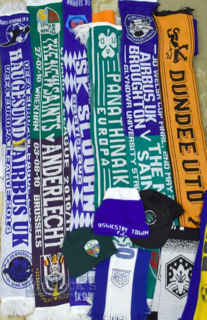 Mixed Selection of Scarves and hats features Dundee Utd, Oswestry Town (+ hat), Rhyl, Barry Town, Swansea City FC, The New Saints (various), Trafford FC, Australia on Tour, unnamed examples (15) box