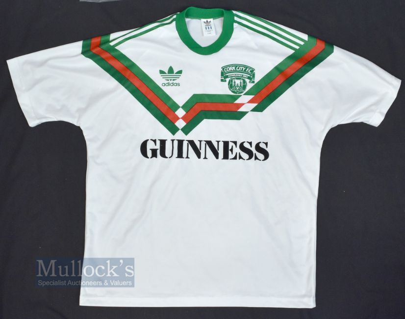 1989/91 Cork City Home Football Shirt Adidas/Guinness, size XL, white, short sleeve