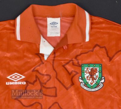1992/94 Wales International Home Football Shirt Umbro, size L, in red, short sleeves