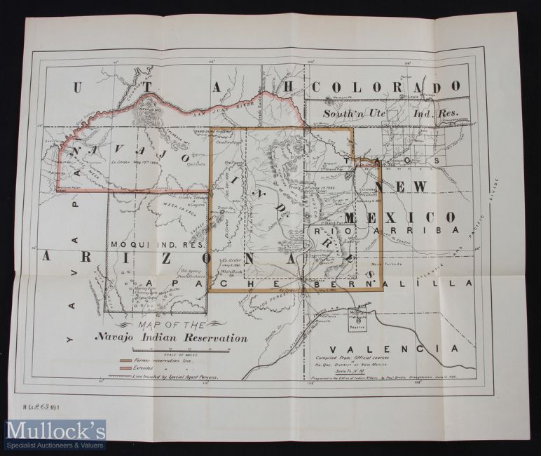 USA - Collection of Government Documents 1850s -1907 relating to various Indian tribes including Navajo Indian Reservation map 1886 16"x12" approx., total 23 documents disbound