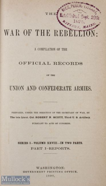USA - The War of the Rebellion Official Records of the Union and Confederate Armies Series 1 Vol XXVIII Part I Reports, Washington 1890, 810pp, covering operations on Morris Island, Bombardment of Fort Sumter, naval action etc, spin faded, covers marked