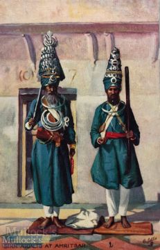 India & Punjab - Akalis at Amritsar A vintage antique postcard showing a Sikh Akalis at Amritsar, c1900