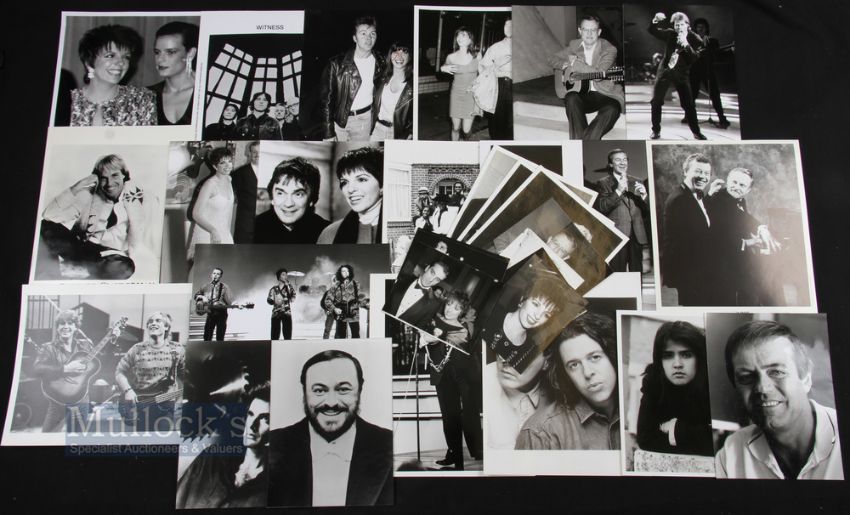 30+ Press Photographs Singers Musicians Artists related lot, to include Liza Minnelli (qty), Richard Clayderman, Cliff Richards, Tanta Takiram, Rodger Whittaker, Paul Young, Witness, Ben Harper, Tears for Fears, plus more. Most have press notes to backs