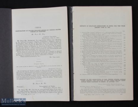 China - Report on the Military Operation in China for the Year Ending 30 June 1901 US Government Document, 114pp, 17 full page photo illustrations, 7 fold out plans, including defence of the Foreign Legations, Peking 58x61cms, disbound in later wraps, along with 'Restoration of Silver Bullion Seized by US Forces at Tientsin' and other correspondence relating to Chinese affairs 1901 to 1902, 144pp (2)