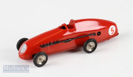 Triang Minic Clockwork Tinplate Race Car in red with number 5 to rear of car, no key