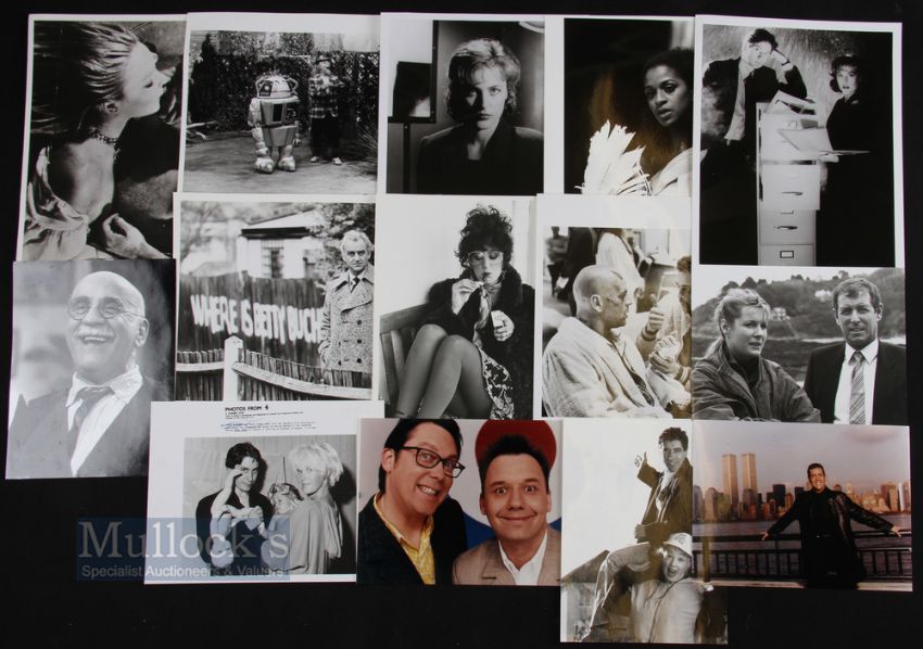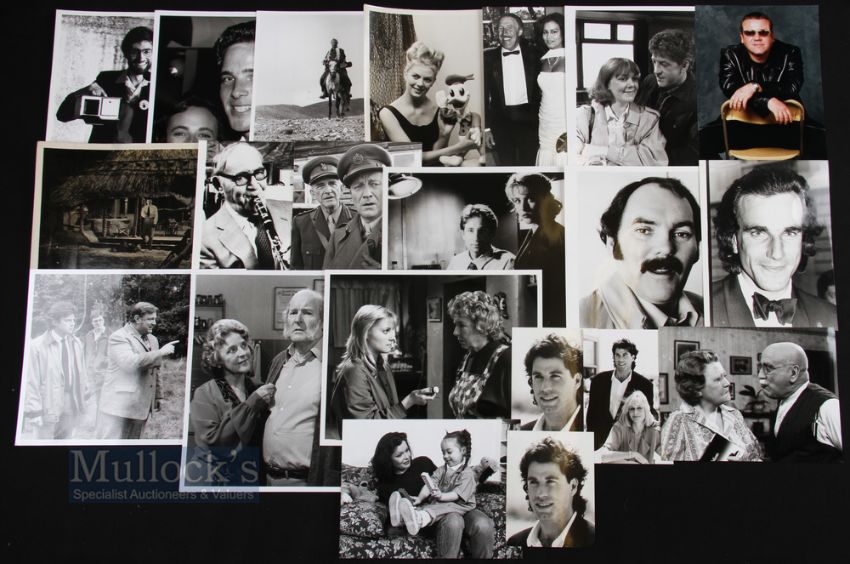 30+ Press Photographs Film Stars Celebrities Actors, to include Maureen Lipman, Metal Mickey, Grace Kennedy, John Thaw, John Travolta, Warren Mitchell, Brad Pitt, John Nettles plus more, over half have notes and names to backs