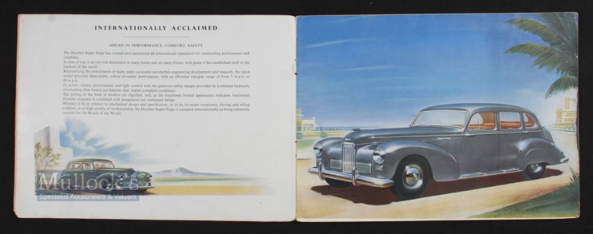 Humber Super Snipe 1950 Sales Catalogue - very fine multicoloured 16 page Catalogue with 14 illustrations of this impressive Car, its luxury interior etc with details and specifications. Printed on the fine semi-gloss paper in card cover, size 12" x 8". Manufactured at the Rootes Group at Royton, Coventry (the King owned one of these Cars)