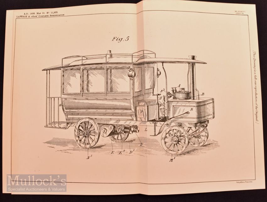 Steam Powered Bus, 1899 Patent Invention accepted of specifications for improvements to this self-propelled Vehicle etc. 5 pages of text and 4 detailing engineering drawings, Size folded 7 ¼ x 10"