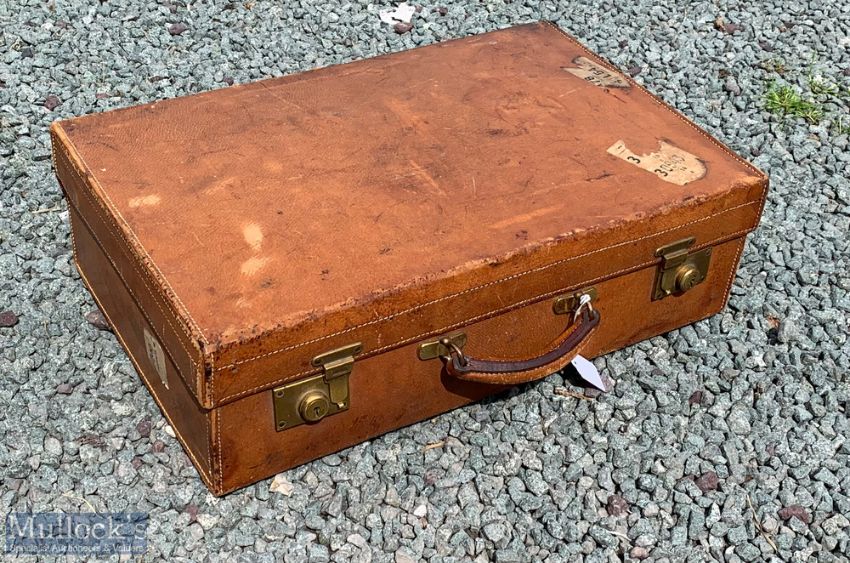 1930s Leather Suitcase with Partial Railway Labels incl Flying Scotsman from Kings Cross and a few others