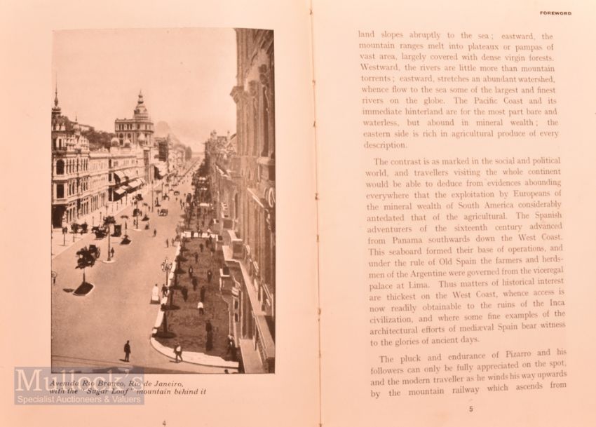 South America by Royal Mail & Pacific Steam Packet, 1917 publication - a well-illustrated publication with 94 pages and over 30 photographs of places of interest in South America and Public rooms of their Ships, with detailing text. Printed on fine semi-gloss paper in multicoloured card covers, size 4¾" x 7¼"