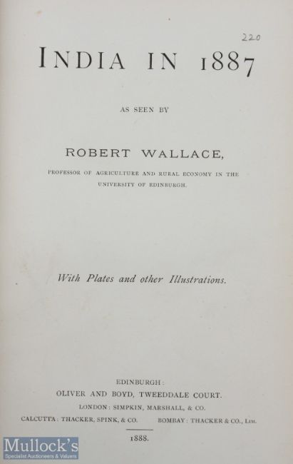 India In 1887 Book by Robert Wallace - A 365 page book with over 70 photographs and illustrations, plus 3 maps. Extensively detailing agriculture, Cattle, horses, various crops in India, related village life etc, has cross referencing index. In cloth board cover, size 6" × 8¾", crack to spine