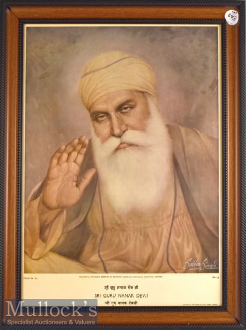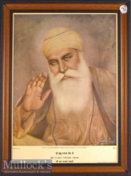 India - Sri Guru Nanak Dev Jr Print - early print from the painting drawn by Sobha Singh the most renowned artist from Punjab after Amrita Shergill. This print was published by Sriomani Gurudwara Parbhandhak committee Amritsar and printed by times of India press Bombay priced at Rs 5/ Year 1978 during that time, size 27" x 20"