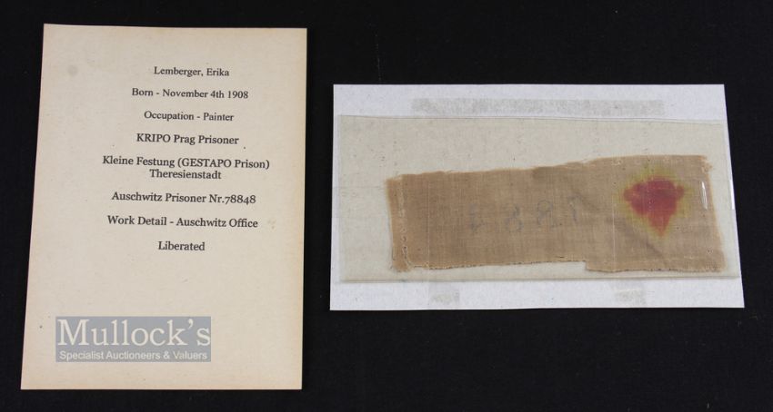 WWII Camp Prisoner Cloth Number -Displays insignia issued to a Czechoslovakian political prisoner. With such a high number, could well relate to the Auschwitz camp system - the number was worn by a Czech inmate there