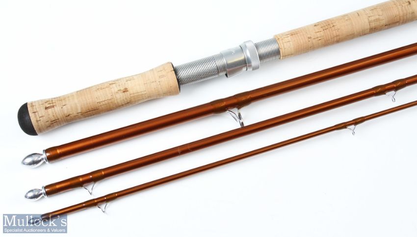 Hardy Alnwick The Angle Salmon Fly Rod, 15ft 4pc line 10#, 26" handle with alloy down locking reel seat, lined stripping rings, light use, original cloth bag and Cordura rod tube with leather Hardy badge. Very nice
