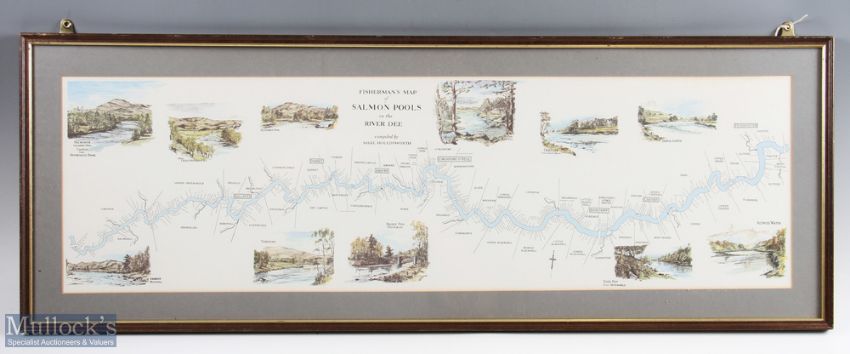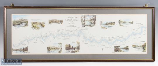 Framed Fishing Print of Fisherman's Map of Salmon Pools on the river Dee, framed and mounted under glass 92cm x 33cm