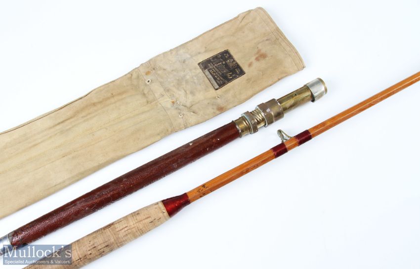 Hardy Alnwick The No 2 Salt Water Rod, 7ft 3" approx., No E10925 (1928), 21" detachable handle with uplocking brass reel seat, leather bound handle with nickel silver butt cap, all original, possible professional refurb. Original bag
