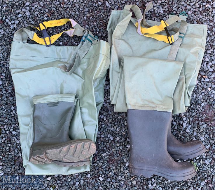 2x Pairs of Ocean Chest Waders with boots, size 10.5 UK, both in used condition