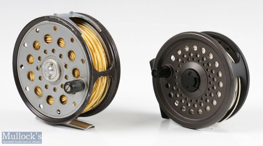 Farlows London Serpent Fly Reel, 4" wide drum spool, runs well, in original box; BFR Rimfly 1095 Fly Reel, 3.5" spool and spare spool, looks unused (2)