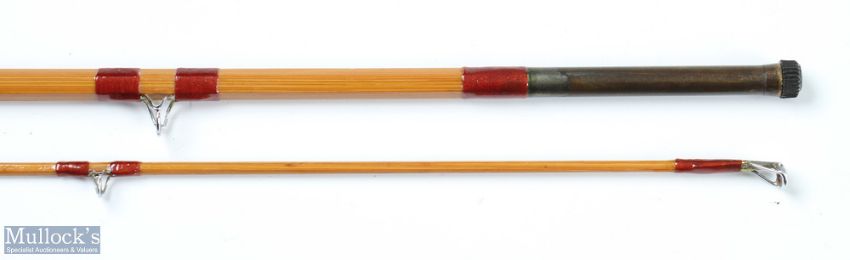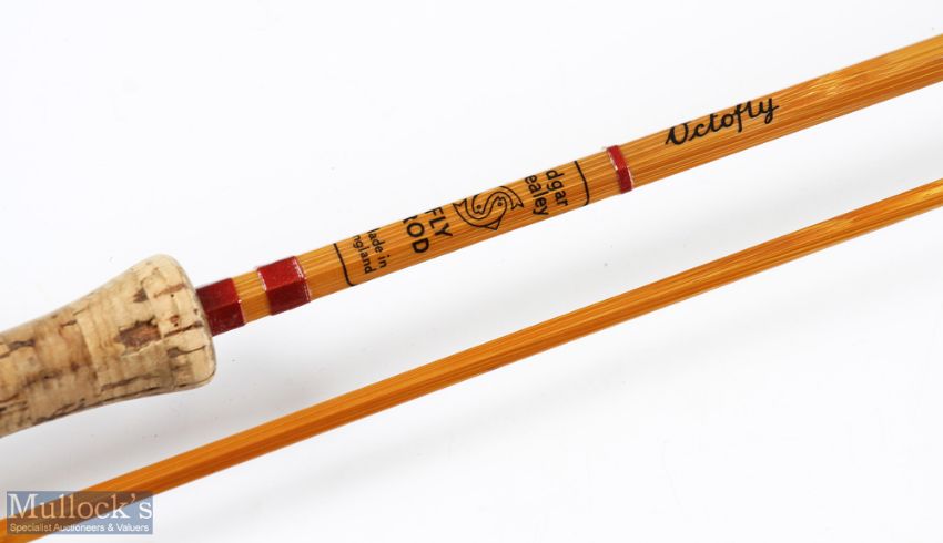 Edgar Sealey & Sons Octo Fly Split Cane Fly Rod, uplocking alloy reel seat, red agate butt/tip rings, ferrule stopper, small loss to handle otherwise very clean in cloth bag
