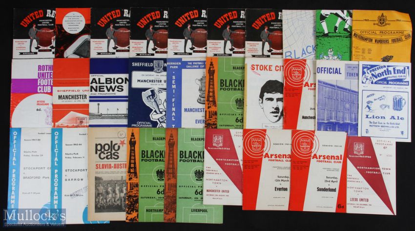 Collection of football programmes 1964/65 (38) good content of Manchester Utd homes (25) and aways (6) to include 1964/65 Stockport County v Liverpool (FA cup); 1965/66 football programmes (45) with good content of Manchester Utd homes (24) and aways (14) including Northampton Town (away), Everton (FAC s/f), Blackpool v Northampton Town, Slavia Prague v FK Austria, Northampton Town v Leeds Utd (December 1965 postponed); varied condition, poor-fair. (83)