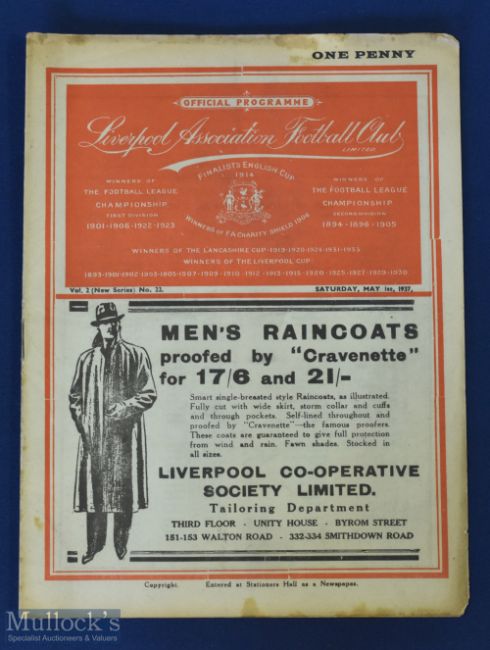 Pre-War 1936/37 Liverpool v Chelsea Programme 1 May 1936 in excellent condition, no writing