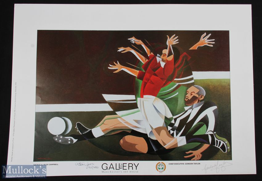 Manchester United 'Tackle' Signed limited edition colour print signed by Alex Campbell (Artist) and Gordon Taylor (Chief Executive) to the border, unframed measures 60x 42cm approx. ready to frame