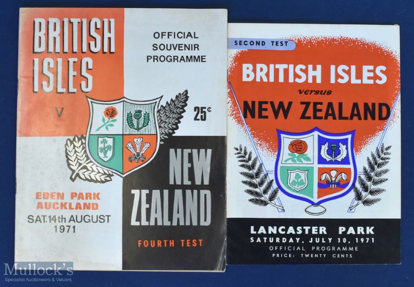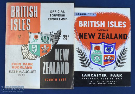 1971 Victorious British & Irish Lions in NZ Test Rugby Programmes (2): The large, packed editions for the 2nd test at Christchurch and the fourth and final drawn test at Auckland. In good condition, v collectable