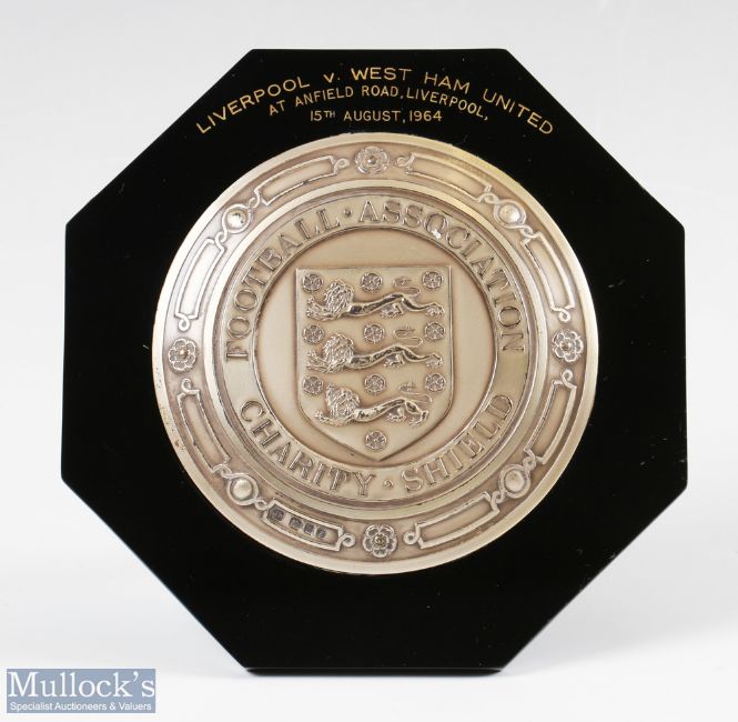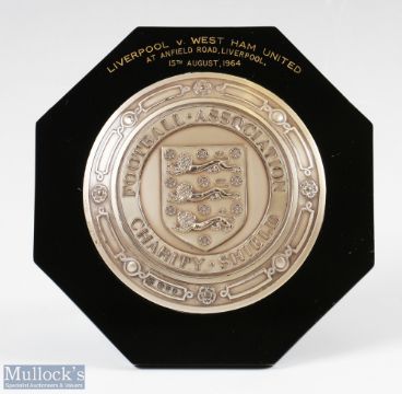 1964 FA Charity Shield Plaque Liverpool v West Ham United 15th August 1964 hallmarked silver on black Bakelite surround, width 13cm