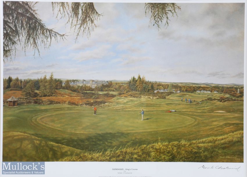 Mark Chadwick (1993) signed colour print titled "Gleneagles - Kings Course, from behind 17th Green, looking back to hotel, clubhouse and 18th hole" dated 1993 and signed in pencil to the margin by the artist mf&g 20.25" x 25"