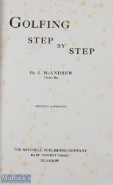 McAndrew, J (Cruden Bay) signed - "Golfing Step by Step" 1st ed c1914, Publ'd Mitchell, Glasgow in original gilt and leather pictorial boards (some fading to spine and slight rubbing to the top), full gilt lined pages with numerous photographic illustrations including a frontis piece of the author, very clean tight copy - some speckle foxing to the front title pages. Note: Part Four - Golf Collection from "David Easby Estate"