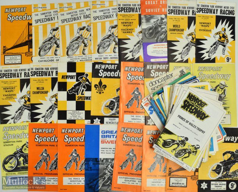 1947-1975 Speedway programmes lot, to include cup League and international meets with teams of Nelson, Bradfield, Bradford, Ellesmere Port, Eastbourne (qty), Doncaster, Newton Grange, Newport (qty), Neath Abbey, with note programmes of Neath Abbey 7th July 1962 -signed copy, Eastbourne v Plymouth 6th Sept 1947, Eastbourne v Rye House 25th April 1954, England v Poland 8th July 1973, Nelson v Wolverhampton B 12th Aug 1967 and much more (#100)