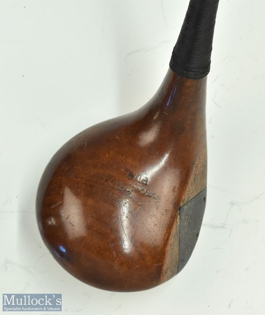 Ernest Jones Chislehurst unusual shallow faced wide body bulldog well lofted baffie - c/w makers shaft stamp just below the replaced period style hide grip. Note Ernest Jones lost a leg in the WW1 and emigrated to the USA and became famous for his method of coaching