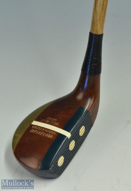 Fine Macgregor Centenary Wooden and Brass Mallet Head Putter - originally Patented in Oct 1919 and fitted with "Yardsmore Inlay" face insert - the sole stamped Centennial 1897-1997 - c/w makers Ohio address shaft stamp below the full length Tacky leather grip