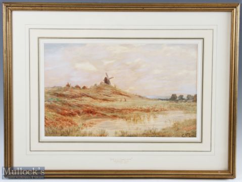 Charles Pyne (Exh 1861-1880) Golfers on Reigate Heath - watercolour signed C Pyne lower right hand corner - image 9 x 15" - mf&g overall 17"x 23" with brief details of the artist written on the back. Note: Part Four - Golf Collection from "David Easby Estate"