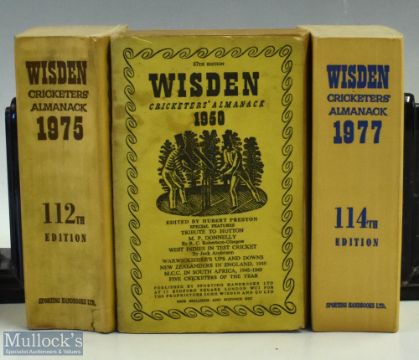 1950, 1976, 1977 Wisden Cricketer Almanacks Books, all are paperback editions, the 1950 edition has signs of wear to spine otherwise G (3)