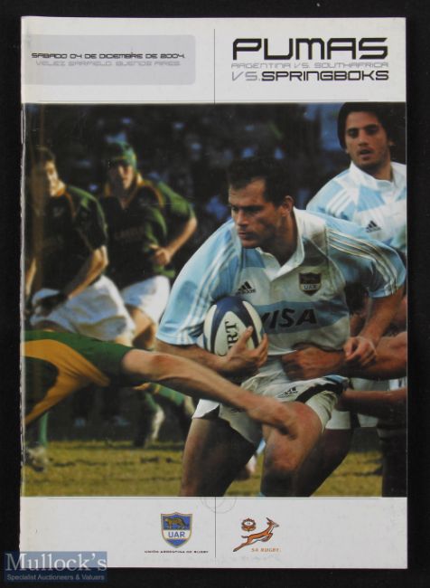 Rare 2004 Argentina v S Africa Rugby Programme: For the match for at Velez Sarsfield, Buenos Aires. VG
