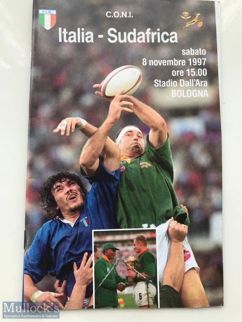1997 Italy v South Africa Rugby Programme: From the game played in Bologna. VG