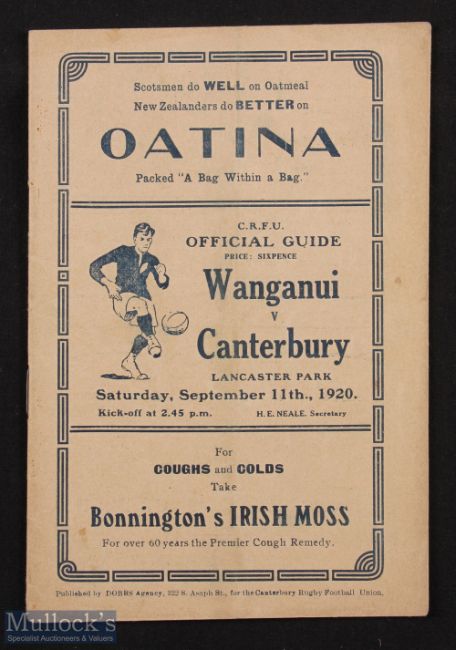 Rare 1920 Wanganui v Canterbury Rugby Programme: Fantastic 1920s NZ example in fabulous condition. VG