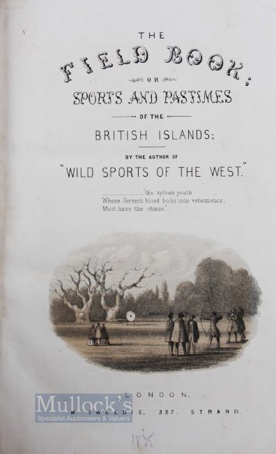 The Field Book of Sports and Pastimes of The British Isles 1835 - a very extensive 508 page book with many illustrations within the text. Detailing much information regarding Breeds of Dogs, Game, Birds and Fishing and Fishes Horses, Racing etc. Bound in Original cloth boards, size 5½" x 8½"