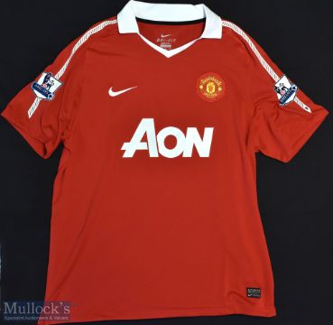 2010-11 Manchester United Football Shirt sponsored by AON, made by Nike, Short Sleeve with Premier League patches to sleeves, Size XL