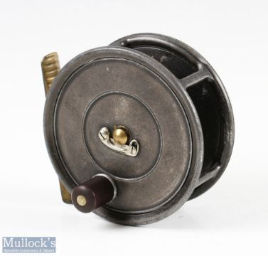 Hardy Bros England 4" Uniqua Duplicated Mk II alloy wide drum salmon reel ribbed brass foot, telephone drum latch, makers marks to rear, constant check, runs smooth, signs of use with corrosion to rear