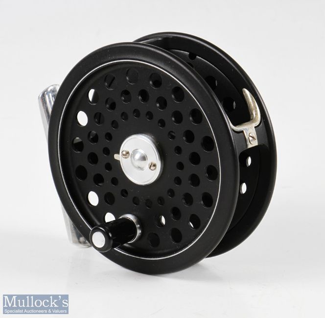 Hardy Alnwick ultralight disc 6 trout fly reel 3 ¼ inch spool with black handle and twin screw latch large rear tensioner alloy foot and U-shaped line guard Hardy Pokey bag instructions and original box looks unused