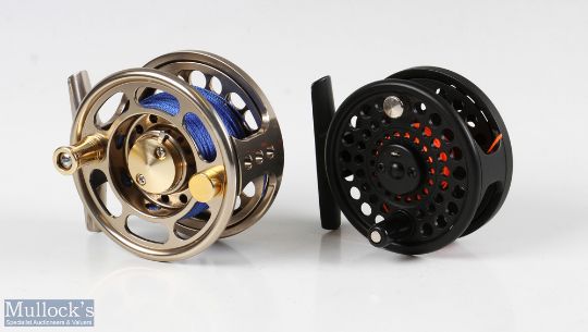 Shakespeare crest 56 fly reel 3 inch wide spool with counterbalance handle large rear tensioner very light use original box. Greys G1 3/4 alloy reel 2 ¾ inch spool with counterbalance handle very light use cloth bag. (2)