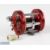 ABU Ambassadeur 6000 multiplier reel in red no number to foot, counterbalance handle, 4 screw side plate, small black arbour, runs smooth with light signs of use, in brown makers leatherette case with oil bottle, tube of spares and spanner