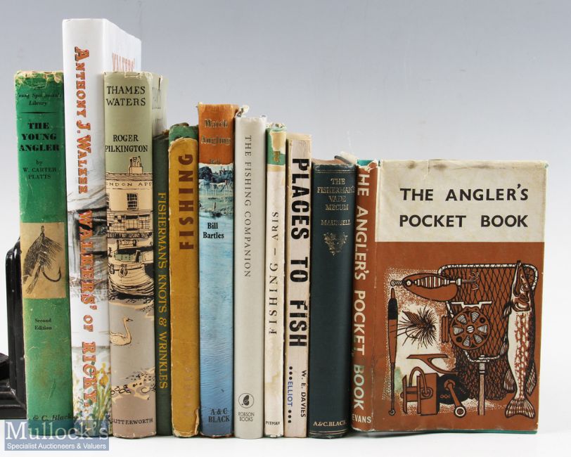 Fishing and Related Books selection to include the fishing companion L Crawford then Young Angler W Carter Platts 1961, Fishing EA Aris 1947, The Fisherman's Vade Mecum 1944, Fisherman's Knots & Wrinkles W A Hunter 1948, Fishing G Clifford 1948 Thames Water Rodger Pilkington 1956, Walker's of Ricky Anthony J Walker 1991 (11)