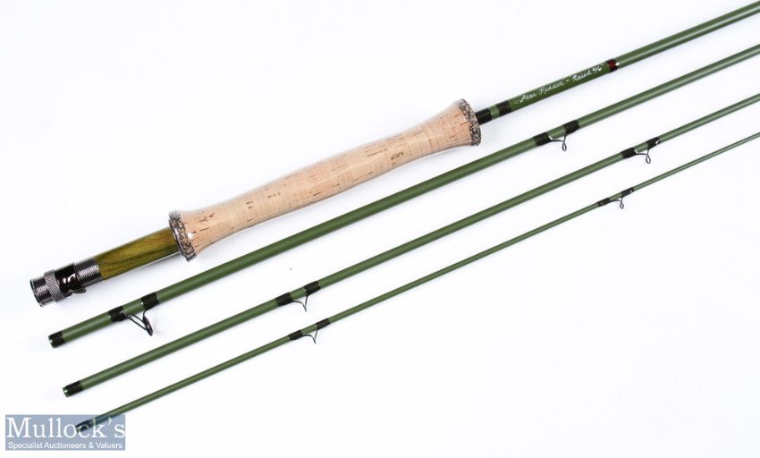Alan Riddell custom fly rod Niaid 96 carbon fly rod 9ft 4pc line 6 # alloy up locking reel seat with carbon insert lined stripping guide plastic still on handle MCB/hard tube looks unused.