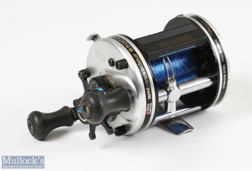 ABU Garcia Sweden 6500C Bait Casting Reel domed end plate, star drag, foot stamp 0668068, runs smooth, signs of use with cloth sleeve