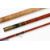 A fine Olivers of Knebworth hollow glass float rod 26 inch handle with alloy sliding reel fittings and collars and red button red agate but/tip ring drop rings with original acorns light use cloth bag.